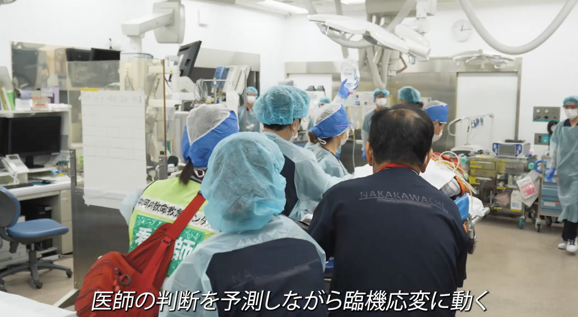 大阪府立中河内救命救急センター様の「看護師採用動画」は、救命救急センターでの看護師採用を目的に制作した映像コンテンツです。30床規模のセンターにおける日常業務や職場の雰囲気を視覚的に伝えることで、看護師志望者が働くイメージをつかみやすい構成設計を行いました。看護師というターゲットに向けて、救急医療のやりがいと業務内容をわかりやすく示し、応募への関心を高める導線を重視した制作です。